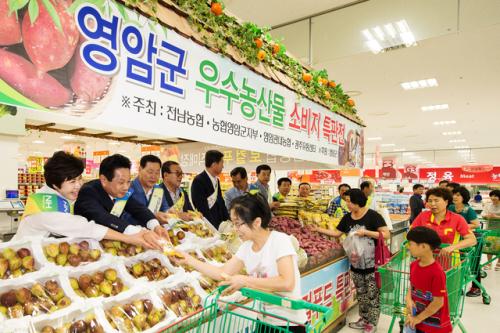 [±¤ÁÖ=¹Ìµð¾îÀü³²] ¹ÚÂù ±âÀÚ = ³óÇùÀü³²Áö¿ªº»ºÎ´Â 19ÀÏ ¿ÀÀü ±¤»ê±¸ ¼ö¿Ïµ¿ ³óÇù±¤ÁÖÀ¯Åë¼¾ÅÍ¿¡¼ ¿µ¾Ï±º ÇÞ ³ó»ê¹° ¼Òºñ ÃËÁø ƯÆÇÀüÀÌ ¿¸° °¡¿îµ¥ Àüµ¿Æò ¿µ¾Ï±º¼ö¿Í Àü³²³óÇù ¹ÚÁ¾¼ö º»ºÎÀå µî °ü°èÀÚµéÀÌ ¼ÒºñÀڵ鿡°Ô Á÷Á¢ ¿µ¾Ï¡¦