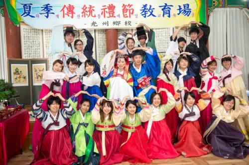 [±¤ÁÖ=¹Ìµð¾îÀü³²] ¹ÚÂù ±âÀÚ = 19ÀÏ ¿ÀÈÄ Á¶¼±´ëÇб³ ¡®2014 International Summer School¡¯ ÇÁ·Î±×·¥¿¡ Âü°¡ÇÑ ÀϺ» ´ëÇлýµéÀÌ ³²±¸ ±¸µ¿ ±¤ÁÖÇâ±³¸¦ ¹æ¹®ÇØ È¥·¹º¹À» ÀÔ°í Çѱ¹ ÀüÅ뿹¹ýÀ» ¹è¿î µÚ ¾Æ¸§´Ù¿î ÇѺ¹ÀÇ ¸Å·Â¿¡ ºüÁ³´Ù.¡¦