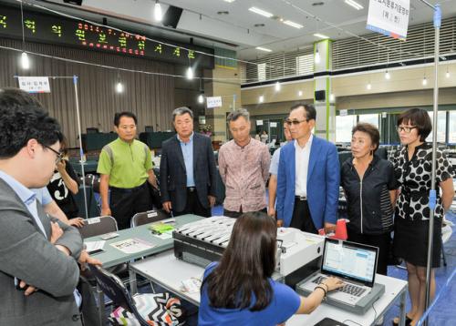 [±¤ÁÖ=¹Ìµð¾îÀü³²] ¹ÚÂù ±âÀÚ = 7.30 º¸±È¼±°Å¸¦ ÇÏ·ç ¾ÕµÐ 29ÀÏ ¿ÀÈÄ ±¤ÁÖ ±¤»ê±¸ ¼±°Å±¸®À§¿ø´Â ±¤»ê±¸Ã» ´ëȸÀǽǿ¡ ¸¶·ÃµÈ °³Ç¥Àå¿¡¼ ÅõÇ¥ Âü°üÀڵ鿡°Ô Àӽà ÅõÇ¥¿ëÁö¸¦ °è¼öÇÏ¸ç °èÇ¥¿¡ ´ëÇÑ ¼³¸íÀ» Çϰí ÀÖ´Ù.
