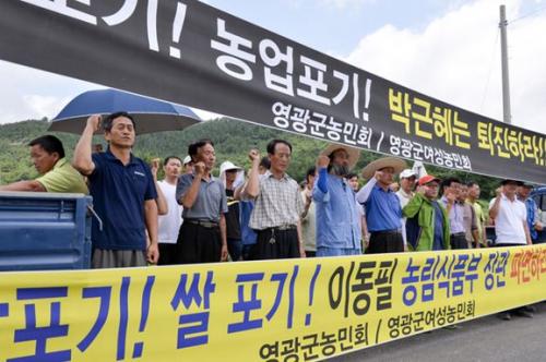 [¿µ±¤=¹Ìµð¾îÀü³²] ¹ÚÂù ±âÀÚ = Áö³ 18ÀÏ ¡°Á¤ºÎÀÇ ½Ò °ü¼¼È °³¹æ ¼±¾ðÀº ³ó¹Îµé·Î ºÎÅÍ ½Ò ³ó»ç¸¦ Æ÷±âÇÏ°í ½Ò Æ÷±â¸¦ ¼±¾ð ÇÑ °ÍÀÌ´Ù¡±°í ºÐ³ëÇϸç 23ÀÏ ¿ÀÀü ¿µ±¤±º ¹é¼öÀ¾ Á׻縮 ³íÀ» °¥¾Æ ¾þ´Â ¸ð½ÀÀ» ±¤Áֽà ³ó¹Îȸ ¿ÀÈ¿¿ ¡¦