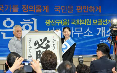 [±¤ÁÖ=¹Ìµð¾îÀü³²] ¹ÚÂù ±âÀÚ = 7.30 º¸±È¼±°Å¿¡ ±¤ÁÖ ±¤»ê±¸(À»)·Î Ã⸶¸¦ ¼±¾ðÇÑ »õÁ¤Ä¡¹ÎÁÖ¿¬ÇÕ ±ÇÀºÈñ È帰¡ 15ÀÏ ¿ÀÈÄ ±¤»ê±¸ Àå½Å·Î¿¡¼ ¼±°Å »ç¹«½ÇÀ» °³¼ÒÇÑ °¡¿îµ¥ ±èÇÑ±æ °øµ¿´ëÇ¥°¡ ±Ç Èĺ¸¿¡°Ô ÇʽÂÀ̶ó´Â ±¸È£°¡ ÀûÈù ¾×ÀÚ¡¦