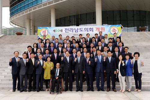 [±¤ÁÖ=¹Ìµð¾îÀü³²] ¹ÚÂù ±âÀÚ = 7ÀÏ ¿ÀÈÄ Àü³²µµÀÇȸ 10´ë ÀÇ¿øÀ¸·Î ¼±ÃâµÈ µµÀÇ¿øµéÀÌ ¿ø±¸¼ºÀ» ¸¶Ä¡°í ±â³äÃÔ¿µÀ» Çϰí ÀÖ´Ù.