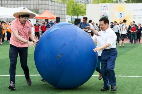 [±¤ÁÖ=¹Ìµð¾îÀü³²] ¹ÚÂù ±âÀÚ = 2ÀÏ ¿ÀÀü ±¤ÁÖ ¼±¸ Ä¡Æòµ¿ »ó¹«½Ã¹Î°ø¿ø¿¡¼ ¡®2014 ±Ù·ÎÀå¾ÖÀÎ ¾î¿ï¸² üÀ°´ëȸ¡¯°¡ °³ÃÖµÈ °¡¿îµ¥ À±ÀåÇö ±¤ÁÖ ½ÃÀåÀÌ Àå¾Ö¿ìµé°ú ÇÔ²² °ø ±¼¸®±â ½ÃÇÕ¿¡ Âü°¡Çϰí ÀÖ´Ù.
