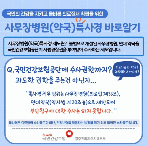 [¹Ìµð¾îÀü³² Á¦°¥´ëÁ¾ ±âÀÚ] ±¹¹Î°Ç°º¸Çè°ø´Ü ±¤ÁÖÀü¶óÁ¦ÁÖÁö¿ªº»ºÎ´Â °ø´ÜÀÌ µµÀÔÇÏ´Â »ç¹«À庴¿ø(¾à±¹)Ư»ç°æ Á¦µµ¿¡ ´ëÇÑ ±¹¹ÎµéÀÇ ±Ã±ÝÁõÀ» ¾Ë±â ½±°Ô ¼³¸íÇÑ Ä«µå´º½º 5Á¾À» Á¦ÀÛÇÏ¿© ÃÑ 5ÁÖ¿¡ °ÅÃÄ °Ô½ÃµÇ°í ÀÖ´Ù.
