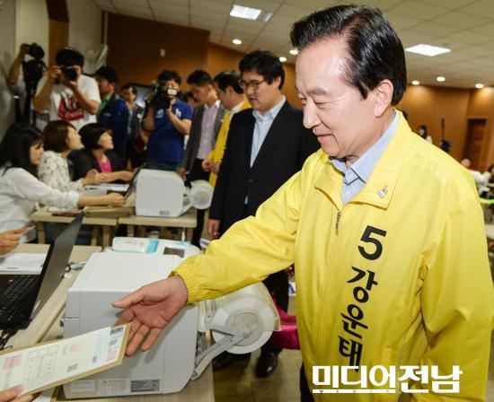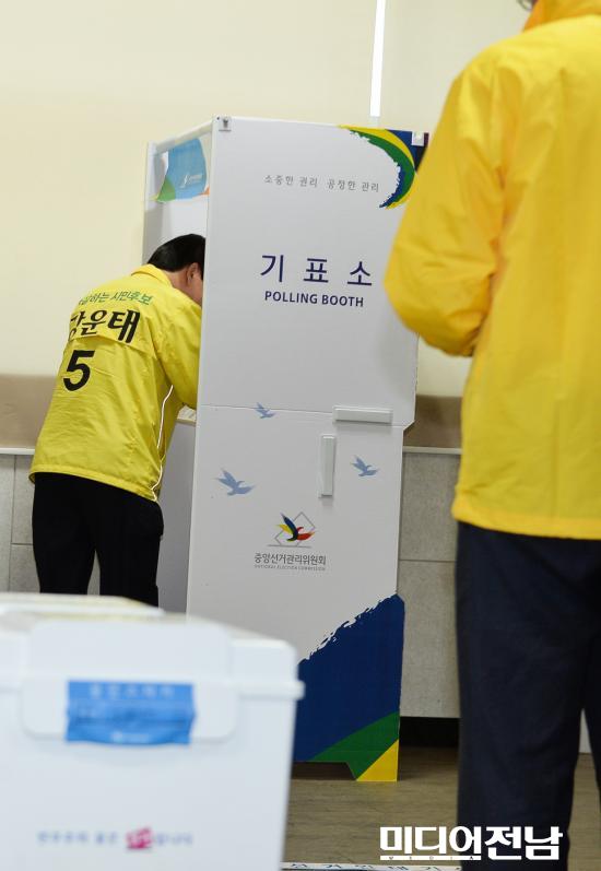 [±¤ÁÖ=¹Ìµð¾îÀü³²] ¹ÚÂù ±âÀÚ = ¹«¼Ò¼Ó °¿îÅ ±¤ÁÖ½ÃÀå Èĺ¸¿Í ºÎÀÎ ÀÌ´öÈñ ¿©»ç°¡ À̿뼷 »óÀÓ¼±´ëÀ§¿øÀå°ú ÇÔ²² 30ÀÏ ¿ÀÀü ¼±¸ Ä¡Æòµ¿ Áֹμ¾ÅÍ¿¡¼ »çÀüÅõÇ¥¸¦ ½Ç½ÃÇϰí ÀÖ´Ù.