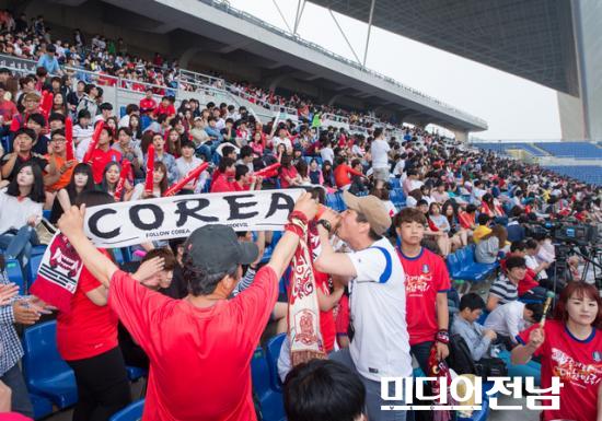 [±¤ÁÖ=¹Ìµð¾îÀü³²] ¹ÚÂù ±âÀÚ = 2014 ºê¶óÁú ¿ùµåÄÅ Á¶º°¸®±× 3Â÷Àü ´ëÇѹα¹ ´ë º§±â¿¡ °æ±â°¡ ¿¸° 27ÀÏ ¿ÀÀü ¼±¸ ±¤ÁÖ¿ùµåÄŰæ±âÀå¿¡´Â ¸¶Áö¸· ±âÀûÀ» ¹Ù¶ó¸ç ¸ðÀÎ ½Ã¹ÎµéÀÌ ´ëÇü½ºÅ©¸°À» º¸¿© ÀÀ¿øÀüÀ» ÆîÄ¡°í ÀÖ´Ù. À̳¯ Çѱ¹Àº ¾Æ½±°Ô 1:0 À¸·Î ÆÐ¹èÇÏ¿© ¿ùµåÄÅ 16° ÁøÃâ¿¡ ½ÇÆÐ¸¦ Çß´Ù.
