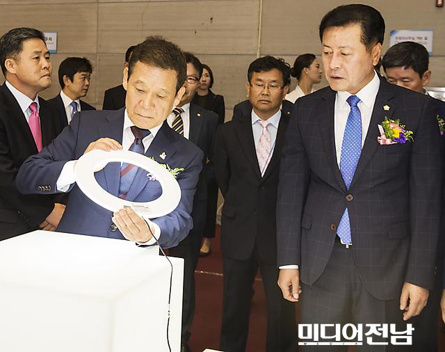 [±¤ÁÖ=¹Ìµð¾îÀü³²] ¹ÚÂù ±âÀÚ = 6ÀÏ ¿ÀÀü ±¤ÁÖ ¼±¸ Ä¡Æòµ¿ ±è´ëÁß ÄÁº¥¼Ç¼¾ÅÍ¿¡¼ »ê¾÷Åë»óÀÚ¿øºÎ¿Í ±¤ÁÖ±¤¿ª½Ã°¡ ÁÖÃÖÇϰí Çѱ¹±¤»ê¾÷ÁøÈïȸ°¡ ÁÖ°üÇÑ ¡®2014 ±¹Á¦ Îà »ê¾÷Àü½Ãȸ¡¯°¡ °³¸·ÇÑ °¡¿îµ¥ À±ÀåÇö ±¤ÁÖ±¤¿ª½ÃÀåÀÌ LEDºÎ½º¸¦ ã¾Æ ÷´Ü Á¶¸í¿¡ ´ëÇØ °ü½ÉÀ» º¸À̰í ÀÖ´Ù. À̹ø Àü½Ã´Â ¿À´Â 8ÀϱîÁö ¿¸®°Ô µÈ´Ù.
