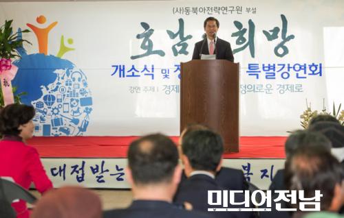 27ÀÏ ÃµÁ¤¹è Àü Àå°üÀº ±¤ÁÖ ¼±¸¿¡ (»ç)µ¿ºÏ¾ÆÀü·«¿¬±¸¿ø ºÎ¼³ Á¤Ã¥¿¬±¸¼ÒÀÎ ¡®È£³²ÀÇ Èñ¸Á¡¯ °³¼Ò½Ä °®°í ¡°È£³²ÀÇ ¼Ò¿Ü¿Í Â÷º°À» ±Øº¹Çϰí, ³ª¶óÀÇ Èñ¸ÁÀ» ¼³°èÇϰڴ١±¸ç È£³²Á¤Ä¡ º¹¿øÀ» ¾à¼ÓÇß´Ù.