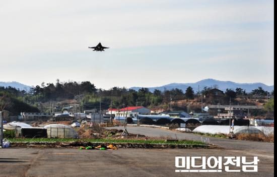 [³ªÁÖ=¹Ìµð¾îÀü³²]¹ÚÂù ±âÀÚ=´ëÇѹα¹ °ø±ºÀº 9ÀÏ ¿ÀÈÄ ³ªÁֽà »êÆ÷¸é ºñ»óȰÁַο¡¼ ¡®ºñ»óȰÁÖ·Î ÀÌ¡¤Âø·ú ÈÆ·Ã¡¯À» ½Ç½ÃÇß´Ù. À̹ø ÈÆ·Ã¿¡ F-15K, KF-16, F-5F/E ÀüÅõ±â¿Í T-50 ÈÆ·Ã±âµî ÃÑ 10¿©´ë°¡ Âü°¡Çß´Ù. ºñ»óȰÁÖ·Î ÀÌ¡¤Âø·ú ÈÆ·ÃÀº ±âÁö ȰÁַΰ¡ ÆÄ¼ÕµÉ °æ¿ì¸¦ ´ëºñÇØ ¿¬·á ¹× ¹«ÀåÀ» Àç º¸±Þ ¹ÞÀ» ¼ö ÀÖµµ·Ï ¸¶·ÃÇÑ Áß¿ä ±º»ç½Ã¼³ÀÌ¸ç ¸Å³â ´Ù¸¥ Áö¹æ ºñ»óȰÁַο¡¼ ½ÇÁ¦ ÀÌ¡¤Âø·ú ÈÆ·ÃÀ» ½Ç½ÃÇØ ¿À´ø Áß ³ªÁÖ¿¡¼´Â 17¿©³â¸¸¿¡ ½Ç½ÃµÆ´Ù.