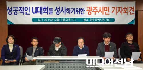 [±¤ÁÖ=¹Ìµð¾îÀü³²]¹ÚÂù ±âÀÚ=17ÀÏ ¿ÀÈÄ ±¤ÁÖ±¤¿ª½ÃÀÇȸ ºê¸®ÇÎ ·ë¿¡¼ ±âÀÚȸ°ßÀ» ¿°í ¡¯³²°ú ºÏÀÌ ÇÔ²²ÇÏ´Â ±¤ÁÖÇϰèU´ëȸ! ±¤ÁֽùΠÅëÀÏ ÄܼƮ Çà»ç À§¿øÈ¸¡¯´Â U´ëȸ 198ÀÏÀ» ¾ÕµÎ°í ±¤ÁֽùÎÀÇ ÈûÀ¸·Î ±¤ÁÖU´ëȸ¸¦ ¼º»ç½ÃŰ°í ³².ºÏÀÌ ÇϳªµÇ´Â ¼¼°èÀÎÀÇ ÃàÁ¦·Î ¼º´ëÇÏ°Ô Ä¡·çÀÚ°í ´ÙÁüÇß´Ù. ´Üü´Â ¿À´Â21ÀÏ ½Ã¹Îµé°ú ÇÔ²²ÇÏ´Â ÄܼƮ¸¦ ½ÃÀÛÀ¸·Î U´ëȸ ¼º°øÀû °³ÃÖ¸¦ À§ÇØ ³ª¼±´Ù°í ¹àÇû´Ù.