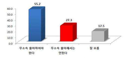 Ÿ崺̵ ѹ鸮ġҿ Ƿ, 4 ϴ 19 ̻ γ 1,000 ǽ ARS (ǹȣ ɱ, ǥ 3.1%Ʈ, ŷڼ 95%) ġ Ż ǻ縦 ̿뼷 ǿ 忡 Ҽ ⸶ؾ Ѵ١ 55.2% Ҽ ⸶ؼ ȵȴ(27.3%) ǰߺ ̻ Ҵ.