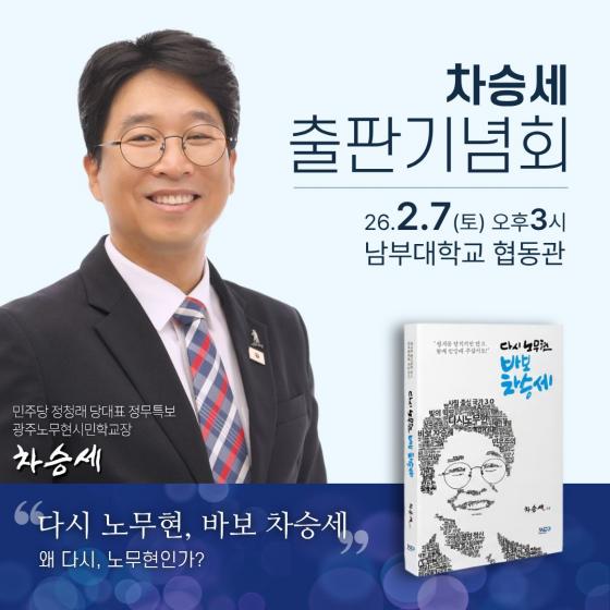 [¹Ìµð¾îÀü³² Á¦°¥´ëÁ¾ ±âÀÚ] ±¤»ê±¸Ã»Àå Ã⸶¿¹Á¤ÀÚÀÎ Â÷½Â¼¼ ´õºÒ¾î¹ÎÁÖ´ç ´ç´ëÇ¥ Á¤¹«Æ¯º¸°¡ 7ÀÏ(Åä) ¿ÀÈÄ 3½Ã ³²ºÎ´ëÇб³ Çùµ¿°ü¿¡¼­ Àú¼­ ¡®´Ù½Ã ³ë¹«Çö ¹Ùº¸ Â÷½Â¼¼¡¯ ÃâÆÇ±â³äȸ¸¦ °³ÃÖÇÑ´Ù. ¡®´Ù½Ã ³ë¹«Çö, ¹Ùº¸ Â÷½Â¼¼¡¯´Â ³ë¡¦