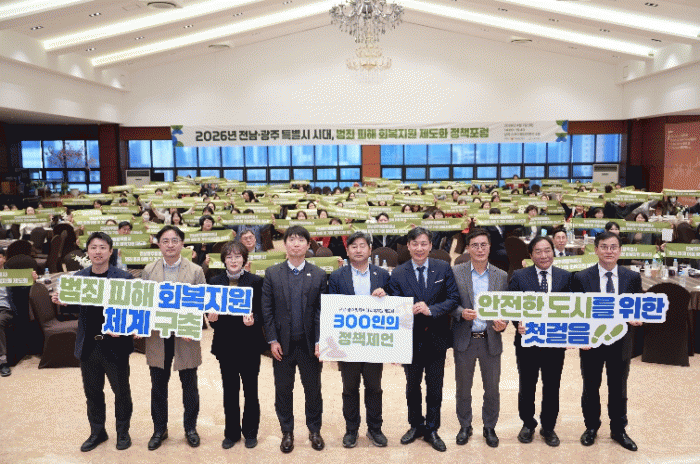 [¹Ìµð¾îÀü³² Á¦°¥´ëÁ¾ ±âÀÚ]Àü¶ó³²µµ°æÂûû°ú ±Â³×À̹ö½º´Â, 4¿ù 7ÀÏ, ¹«¾È ½ºÄ«ÀÌ¿þµùȦ¿¡¼ ¹üÁËÇÇÇØÀÚ Áö¿ø À¯°ü±â°ü¡¤±Â³×À̹ö½º µî °ü°èÀÚ 300¿© ¸íÀÌ Âü¼®ÇÑ °¡¿îµ¥¡®2026 Àü³²¡¤±¤ÁÖÆ¯º°½Ã ½Ã´ë, ¹üÁË ÇÇÇØ ȸº¹Áö¿ø Á¦µµÈ Á¤¡¦