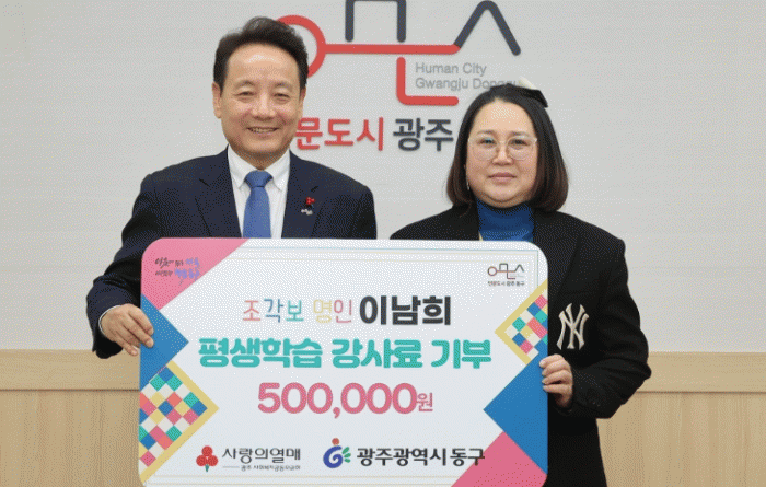 [¹Ìµð¾îÀü³² Á¦°¥´ëÁ¾ ±âÀÚ]±¤ÁÖ µ¿±¸´Â Æò»ýÇнÀ°ü¿¡¼ Á¶°¢º¸ Æ÷Àå °»ç·Î Ȱµ¿ÇÑ À̳²Èñ ¾¾°¡ °»ç·á ÀϺθ¦ ±âºÎÇϸç Áö¿ª»çȸ¿¡ µû¶æÇÑ ³ª´®À» ÀüÇß´Ù°í ¹àÇû´Ù. À̳²Èñ ¸íÀÎÀº µ¿±¸Æò»ýÇнÀ°ü¿¡¼ Á¶°¢º¸ Æ÷Àå °ÀÇÀ» ÁøÇàÇϸç ÁÖ¡¦