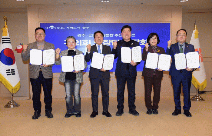 [¹Ìµð¾îÀü³² Á¦°¥´ëÁ¾ ±âÀÚ]±¤ÁÖ½Ã¿Í 5°³ ÀÚÄ¡±¸ÀÇȸ°¡ (°¡Äª)±¤ÁÖÀü³²Æ¯º°½ÃÀÇ ¼º°øÀû ¾ÈÂøÀ» À§ÇÑ ¡®´ëÅëÇÕ °øµ¿ ¼±¾ð¡¯À» ¹ßÇ¥Çß´Ù. ±¤ÁÖ±¤¿ª½Ã´Â 12ÀÏ ½Ãû ºñÁî´Ï½º·ë¿¡¼ ¡®±¤ÁÖ¡¤Àü³² ÇàÁ¤ÅëÇÕ¡¯ °ü·Ã ÀÚÄ¡±¸ÀÇȸ ÀÇÀå´Ü °£´ãȸ¸¦¡¦
