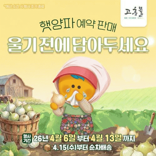 [¹Ìµð¾îÀü³² Á¦°¥´ëÁ¾ ±âÀÚ]°íÈﱺÀÌ ¿î¿µÇÏ´Â ¿Â¶óÀÎ ¼îÇθô ¡®°íÈï¸ô¡¯Àº Á¦Ã¶À» ¸ÂÀº °íÈï»ê ÇÞ¾çÆÄ¸¦ º¸´Ù ÇÕ¸®ÀûÀÎ °¡°ÝÀ¸·Î ¼±º¸À̱â À§ÇØ ¡®°Å±Ýµµ ÇÞ¾çÆÄ¡¯ ¿¹¾à ÁÖ¹® ÆÇ¸Å¸¦ 4¿ù 6ÀϺÎÅÍ 13ÀϱîÁö ÁøÇàÇÑ´Ù°í ¹àÇû´Ù. À̹ø ¿¹¾à¡¦