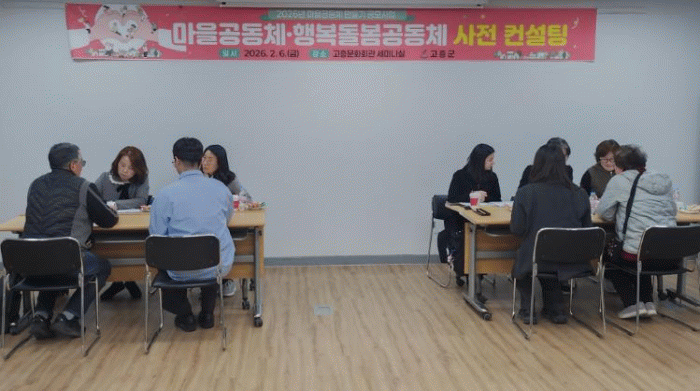 [¹Ìµð¾îÀü³² Á¦°¥´ëÁ¾ ±âÀÚ]°íÈﱺÀº 6ÀÏ °íÈï¹®Èȸ°ü ¼¼¹Ì³ª½Ç¿¡¼ 2026³â ¸¶À»°øµ¿Ã¼ °ø¸ð»ç¾÷¿¡ ¼±Á¤µÈ °øµ¿Ã¼¸¦ ´ë»óÀ¸·Î »ç¾÷ÀÇ ¹æÇ⼺°ú ½ÇÇà·ÂÀ» ³ôÀ̱â À§ÇÑ »çÀü ÄÁ¼³ÆÃÀ» ½Ç½ÃÇß´Ù°í ¹àÇû´Ù. À̳¯ ÄÁ¼³ÆÃ¿¡´Â Àü¶ó³²µµ ¸¶À»°ø¡¦