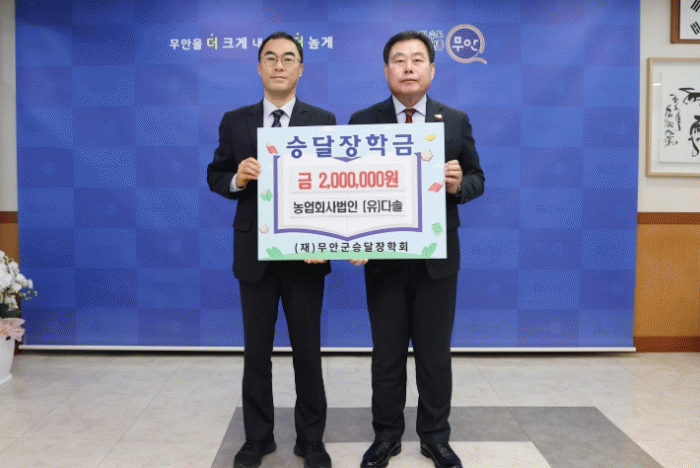 [¹Ìµð¾îÀü³² ±èÆÇ±¹ ±âÀÚ]¹«¾È±ºÀº Áö³ 9ÀÏ ³ó¾÷ȸ»ç¹ýÀÎ À¯ÇÑȸ»ç ´Ù¼Ö ±èÁö¼ö ´ëÇ¥°¡ Áö¿ª ÀÎÀç À°¼ºÀ» À§ÇØ (Àç)¹«¾È±º½Â´ÞÀåÇÐȸ¿¡ ÀåÇÐ±Ý 200¸¸ ¿øÀ» ±âŹÇß´Ù°í ¹àÇû´Ù. À̹ø ±âŹÀº Áö¿ª ³ó»ê¹° À¯Åë¿¡ ±â¿©ÇØ ¿Â Áö¿ª ±â¾÷ÀÎÀ¸¡¦