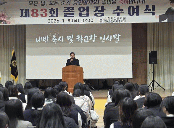 [¹Ìµð¾îÀü³² Á¦°¥´ëÁ¾ ±âÀÚ]±èÁ¤Èñ Àü³²µµÀÇȸ ±³À°À§¿øÀåÀº 1¿ù 8ÀÏ, ¼øÃµ¼¼ºûÁßÇб³¿¡¼ ¿¸° Á¦83ȸ Á¹¾÷½Ä¿¡ Âü¼®ÇØ Á¹¾÷»ýµéÀÇ »õ·Î¿î Ãâ¹ßÀ» ÃàÇÏÇϰí, Àü³²±³À°ÀÇ ¹Ì·¡¸¦ ÇâÇÑ µû¶æÇÑ °Ý·ÁÀÇ ¸Þ½ÃÁö¸¦ ÀüÇß´Ù. À̳¯ ±è À§¿øÀåÀº¡¦