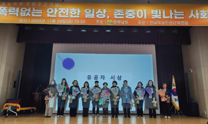 [¹Ìµð¾îÀü³² Á¦°¥´ëÁ¾ ±âÀÚ]Àü¶ó³²µµ´Â ¿À´Â 12¿ù 1ÀϱîÁö 1ÁÖÀϰ£ ¿©¼ºÆø·ÂÃß¹æÁÖ°£À» ¸Â¾Æ Æø·Â ¾ø´Â ¾ÈÀüÇÑ ÀÏ»óÀ» ¸¸µé±â À§ÇØ 28ÀÏ Àü³²¿©¼º°¡Á·Àç´Ü¿¡¼ ´Ùä·Î¿î ±â³äÇà»ç¸¦ °³ÃÖÇß´Ù. Àü³²µµ°¡ ÁÖÃÖÇϰí Àü³²¿©¼ºÀαǴÜü¿¬ÇÕ(¿¬¡¦