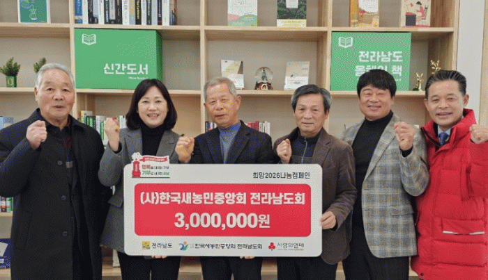 [¹Ìµð¾îÀü³² Á¦°¥´ëÁ¾ ±âÀÚ]Àü¶ó³²µµ´Â 7ÀÏ (»ç)Çѱ¹»õ³ó¹ÎÁß¾Óȸ Àü³²µµÈ¸°¡ ¿¬¸»¿¬½Ã ÀÌ¿ô»ç¶û ½ÇõÀ» À§ÇÑ ¡®Èñ¸Á2026 ³ª´®Ä·ÆäÀΡ¯¿¡ ¼º±Ý 300¸¸ ¿øÀ» Àü´ÞÇß´Ù°í ¹àÇû´Ù. À̹ø ¼º±ÝÀº »õ³ó¹Îȸ Àü³²µµ ÀÓ¿øÁøÀÌ Á¤¼º²¯ ¸¶·ÃÇÑ ±â±Ý¡¦