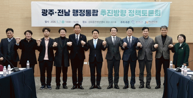 [¹Ìµð¾îÀü³² Á¦°¥´ëÁ¾ ±âÀÚ]±¤ÁÖ¿¬±¸¿ø°ú Àü³²¿¬±¸¿øÀº 7ÀÏ ¿ÀÈÄ ±è´ëÁßÄÁº¥¼Ç¼¾ÅÍ¿¡¼ ±¤ÁÖ¡¤Àü³² ÇàÁ¤ÅëÇÕ ÃßÁø Çʿ伺¿¡ ´ëÇÑ »çȸÀû °ø°¨´ë¸¦ È®º¸ÇÏ°í ¼º°øÀû ÅëÇÕ ¹æ¾ÈÀ» ¸ð»öÇϱâ À§ÇØ ¡®±¤ÁÖ¡¤Àü³² ÇàÁ¤ÅëÇÕ ÃßÁø ¹æÇâ Á¤Ã¥Åä·Ðȸ¡¦