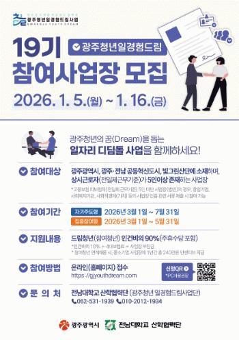 [¹Ìµð¾îÀü³² Á¦°¥´ëÁ¾ ±âÀÚ]±¤ÁÖ±¤¿ª½Ã´Â ¿ÃÇØ »ó¹Ý±â ±¤ÁÖ Ã»³âµé¿¡°Ô Á÷¹«ÇöÀå ÀϰæÇèÀ» Á¦°øÇÒ ¡®±¤ÁÖû³â ÀϰæÇè µå¸²ÅÍ(»ç¾÷Àå)¡¯¸¦ ¿À´Â 16ÀϱîÁö ¸ðÁýÇÑ´Ù. ¡®±¤ÁÖû³â ÀϰæÇè µå¸²¡¯ »ç¾÷Àº ¹ÌÃë¾÷ û³âÀÌ ´Ù¾çÇÑ »ç¾÷Àå¿¡¼ ÀÏ¡¦