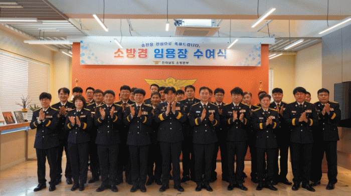 [¹Ìµð¾îÀü³² Á¦°¥´ëÁ¾ ±âÀÚ]Àü³²¼Ò¹æ(º»ºÎÀå ÁÖ¿µ±¹)´Â 5ÀÏ º»ºÎ 4Ãþ ȸÀǽǿ¡¼ ¼Ò¹æ°æ 29¸í ½ÂÁø¿¡ ´ëÇÑ ÀÓ¿ëÀå ¼ö¿©½ÄÀ» °³ÃÖÇß´Ù. À̹ø ÀÓ¿ë½ÄÀº ¼Ò¹æÁ¶Á÷ÀÇ Àü¹®¼º°ú ´ëÀÀ·ÂÀ» °È±â À§ÇÑ ½ÂÁøÀÚÀÇ ¿ªÇÒÀ» °Ý·ÁÇÏ°í »õ·Ó°Ô ÁÖ¾îÁø¡¦