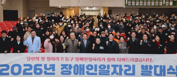 [¹Ìµð¾îÀü³² Á¦°¥´ëÁ¾ ±âÀÚ]±¤ÁÖ µ¿±¸´Â Áö³ 2ÀÏ ¡®´Ù¸§ÀÌ ¾Æ´Ñ °ø°¨À¸·Î ÇÔ²²ÇÏ´Â Àå¾ÖÀΠģȵµ½Ã Á¶¼º¡¯ ÀÏȯÀ¸·Î ¡®2026³â Àå¾ÖÀÎ ÀÏÀÚ¸® ¹ß´ë½Ä¡¯À» °³ÃÖÇß´Ù°í ¹àÇû´Ù. À̳¯ ¹ß´ë½Ä¿¡´Â Àå¾ÖÀÎÀÏÀÚ¸®»ç¾÷ Âü¿©ÀÚ 218¸íÀ» ºñ·ÔÇØ ¡¦
