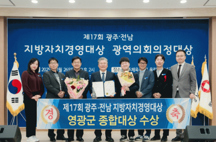 [¹Ìµð¾îÀü³² Á¦°¥´ëÁ¾ ±âÀÚ] ¿µ±¤±ºÀÌ 11¿ù 26ÀÏ ±¤ÁÖ ¿°ÁÖüÀ°°ü¿¡¼ °³ÃÖµÈ Á¦17ȸ ±¤ÁÖ¡¤Àü³² Áö¹æÀÚÄ¡°æ¿µ´ë»ó ½Ã»ó½Ä¿¡¼ ÃÖ°í ¿µ¿¹ÀÎ Á¾ÇÕ´ë»óÀ» ¼ö»óÇß´Ù. À̹ø ¼ö»óÀº Áö³ 1³â°£ ¿µ±¤±ºÀÇ ÇàÁ¤ Àü¹Ý¿¡ °ÉÄ£ ¼º°ú¿Í Çõ½ÅÀûÀÎ ¡¦