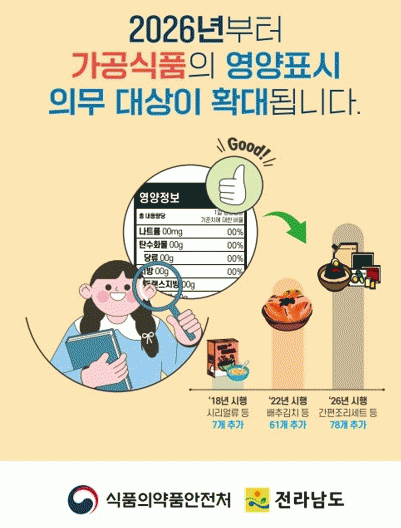 [¹Ìµð¾îÀü³² Á¦°¥´ëÁ¾ ±âÀÚ]Àü¶ó³²µµ´Â ±¹¹ÎÀÇ ¾Ë±Ç¸® °È¿Í °Ç°ÇÑ ½Ä»ýȰ À¯µµ¸¦ À§ÇØ ÀϺΠǰ¸ñ¿¡¸¸ Àû¿ëµÇ´ø Ãà»ê¹°°¡°øÇ° ¿µ¾ç¼ººÐ Ç¥½ÃÁ¦µµ°¡ 1¿ùºÎÅÍ Àü¸é È®´ëµÈ´Ù°í ¹àÇû´Ù. ¿µ¾ç¼ººÐ Ç¥½Ã ´ë»óÀº Ãà»ê¹°(½Äǰ Æ÷ÇÔ)À» Á¦Á¶¡¤¡¦
