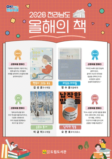 [¹Ìµð¾îÀü³² Á¦°¥´ëÁ¾ ±âÀÚ]Àü¶ó³²µµ¸³µµ¼°üÀÌ µµ¹ÎÀÇ Á¤¼ ÇÔ¾ç°ú Ã¥ Àд ¹®È È®»êÀ» À§ÇØ ¡®2026 ¿ÃÇØÀÇ Ã¥¡¯ 4±ÇÀ» ¼±Á¤Çß´Ù. ¼±Á¤ µµ¼´Â ¹®ÇС¤ºñ¹®ÇС¤Ã»¼Ò³â¡¤¾î¸°ÀÌ 4°³ ºÐ¾ß °¢ 1±Ç¾¿À¸·Î, ¡®½½ÇÄÀÇ Æ´»õ¡¯, ¡®³³ÀÛÇÑ ¸»µé¡¦