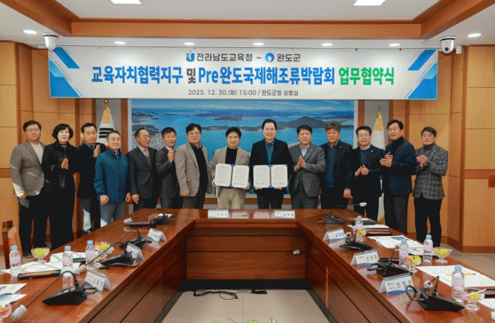 [¹Ìµð¾îÀü³² °í±Ô¼® ±âÀÚ]¿Ïµµ±ºÀº Áö³ÇØ 12¿ù 30ÀÏ Àü¶ó³²µµ±³À°Ã»°ú ±³À°ÀÚÄ¡Çù·ÂÁö±¸ÀÇ ¿øÈ°ÇÑ »ç¾÷ ¿î¿µ°ú 2026 Pre¿Ïµµ±¹Á¦ÇØÁ¶·ù¹Ú¶÷ȸ Çù·Â ü°è ±¸ÃàÀ» À§ÇÑ ¾÷¹« Çù¾àÀ» ü°áÇß´Ù. Çù¾à½Ä¿¡´Â ½Å¿ìö ¿Ïµµ±º¼ö, ±è´ëÁß Àü¶ó³²¡¦