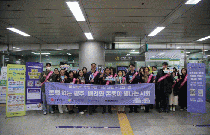 [¹Ìµð¾îÀü³² Á¦°¥´ëÁ¾ ±âÀÚ]±¤ÁÖ±³Åë°ø»ç(»çÀå Á¶À͹®)°¡ ¡®¼¼°è ¿©¼º Æø·Â Ãß¹æ ÁÖ°£(11¿ù 25ÀÏ~ 12¿ù 1ÀÏ)¡¯À» ¸Â¾Æ 25ÀÏ ¼±¸ »ó¹«¿ª¿¡¼ À뱂 Á¸Áß ¹®È È®»êÀ» À§ÇÑ À¯°ü ±â°ü ÇÕµ¿ Ä·ÆäÀÎÀ» ÆîÃÆ´Ù. À̳¯ Çà»ç¿¡´Â ±¤ÁÖ½Ã, ±¤ÁÖ¡¦