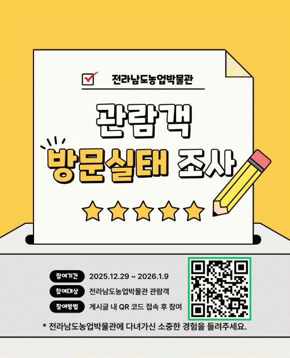 [¹Ìµð¾îÀü³² Á¦°¥´ëÁ¾ ±âÀÚ]Àü¶ó³²µµ³ó¾÷¹Ú¹°°üÀÌ °ü¶÷°´ÀÇ ÀÌ¿ë ½ÇŸ¦ ÆÄ¾ÇÇϰí, ³ó¾÷¹Ú¹°°ü ¾î¸°ÀÌ º¹ÇÕ¹®È°ü °Ç¸³¿¡ ´ëÇÑ µµ¹Î ÀνÄÀ» ¼ö·ÅÇϱâ À§ÇØ 9ÀϱîÁö ÃÑ 2Á¾ÀÇ ¼³¹®Á¶»ç¸¦ ½Ç½ÃÇÑ´Ù. ù ¹øÂ° ¼³¹®Á¶»ç´Â °ü¶÷°´ ¹æ¹® ½ÇÅ ¡¦