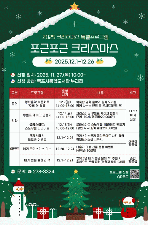 [¹Ìµð¾îÀü³² °í±Ô¼® ±âÀÚ]¸ñÆ÷½Ã¸³µµ¼°üÀº 12¿ùÀ» ¸Â¾Æ Áö¿ªÁֹεéÀÌ µû¶æÇÑ ¿¬¸»À» Áñ±æ ¼ö ÀÖµµ·Ï Å©¸®½º¸¶½º Ưº°ÇÁ·Î±×·¥ ¡®Æ÷±ÙÆ÷±Ù Å©¸®½º¸¶½º¡¯¸¦ ¿î¿µÇÑ´Ù. 12¿ù 7ÀÏ ¿ÀÈÄ 2½Ã¿¡´Â ¹êµå ÆÇÀÇ ¿µÈÀ½¾Ç ºÏÄܼƮ ¡®¿À¹ö ´õ Çʸ§¡¦