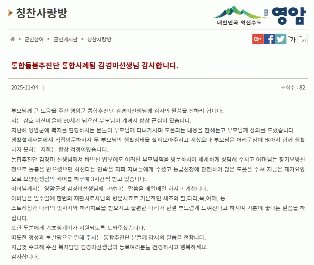 [¹Ìµð¾îÀü³² ÀüÇü¼º ±âÀÚ]¿©¼ö½Ã´Â Áö³ 25ÀÏ µð¿À¼ÇÈ£ÅÚ¿¡¼ ¡®2025³â »çȸº¹ÁöÁ¾»çÀÚ ¹Î¡¤°ü ¿öÅ©¼ó¡¯À» °³ÃÖÇϰí Áö¿ª »çȸ °÷°÷¿¡¼ ¹¬¹¬È÷ ½Ã¹ÎÀÇ »îÀ» ÁöÄѿ »çȸº¹Áö Á¾»çÀÚ 150¿© ¸í°ú ¹Î°ü Çù·Â °È¿Í ÇöÀå ¿ª·® Á¦°í¸¦ À§ÇÑ ¡¦