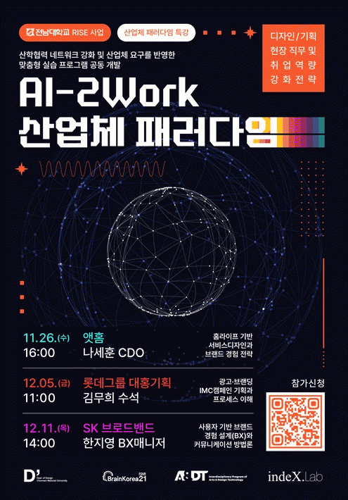 [¹Ìµð¾îÀü³² Á¦°¥´ëÁ¾ ±âÀÚ]Àü³²´ëÇб³´Â RISE»ç¾÷ÀÇ ÀÏȯÀ¸·Î ¡®AI-2Work »ê¾÷ü ÆÐ·¯´ÙÀÓ ÇÁ·Î±×·¥¡¯À» º»°Ý ¿î¿µÇÑ´Ù°í 26ÀÏ ¹àÇû´Ù. ¿À´Â 11¿ù 26ÀϺÎÅÍ ½ÃÀ۵Ǵ À̹ø ÇÁ·Î±×·¥Àº Àü³²´ëÇб³ µðÀÚÀÎÇаú°¡ ÁÖÃÖ¡¤ÁÖ°üÇÏ°í ¾ÆÆ®¡¤µð¡¦