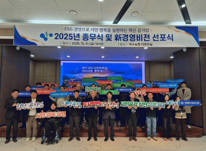 [¹Ìµð¾îÀü³² ÀüÇü¼º ±âÀÚ]¿©¼ö½Ãµµ½Ã°ü¸®°ø´ÜÀº 31ÀÏ °ø´Ü ´ëȸÀǽǿ¡¼ ¡®ãæ °æ¿µºñÀü ¼±Æ÷½Ä¡¯À» °³ÃÖÇϰí, ÇâÈÄ 5³â°£ °ø´ÜÀÌ ³ª¾Æ°¥ »õ·Î¿î °æ¿µ öÇаú Á¶Á÷ Çõ½Å ÀÇÁö¸¦ ´ë³»¿Ü¿¡ °ø½ÄÀûÀ¸·Î ¹àÇû´Ù. À̹ø ¼±Æ÷½ÄÀº °ø´ÜÀÌ ÃßÁø¡¦