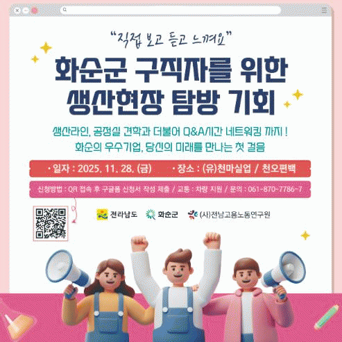[¹Ìµð¾îÀü³² ÀÓ¼º¿Ï ±âÀÚ]¼øÃµ½Ã°¡ û³âµéÀÇ Àå±â±Ù¼Ó À¯µµ ¹× Á¤±ÔÁ÷ ÀÏÀÚ¸® Ãë¾÷ ÃËÁøÀ» À§ÇØ ¡®2025³â Àü³² û³â ±Ù¼ÓÀå·Á±Ý Áö¿ø»ç¾÷¡¯¿¡ Âü¿©ÇÒ ±â¾÷ ¹× ±Ù·ÎÀÚ¸¦ »ó¹Ý±â¿¡ À̾î Ãß°¡ ¸ðÁýÇÑ´Ù°í ¹àÇû´Ù. ¸ðÁý ´ë»óÀº °í¿ëº¸Çè ÇǺ¸¡¦