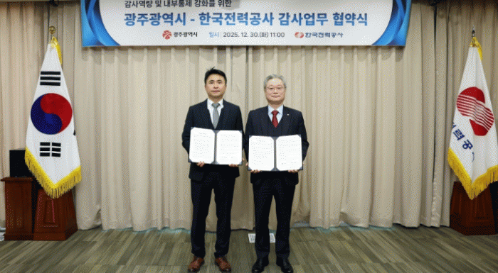 [¹Ìµð¾îÀü³² Á¦°¥´ëÁ¾ ±âÀÚ]±¤ÁÖ±¤¿ª½Ã¿Í Çѱ¹Àü·Â°ø»ç´Â 30ÀÏ ³ªÁÖ ÇÑÀü º»»ç¿¡¼ ¡®°¨»ç¾÷¹« Çù·Â °È¸¦ À§ÇÑ ¾÷¹«Çù¾à(MOU)¡¯À» ü°áÇß´Ù. Çù¾à½Ä¿¡¼ ÀÓÅÂÇü °¨»çÀ§¿øÀå°ú Àü¿µ»ó ÇÑÀü »óÀÓ°¨»ç´Â ¾ç ±â°ü °¨»ç±â±¸ÀÇ »óÈ£ ¹ßÀü°ú ¡¦