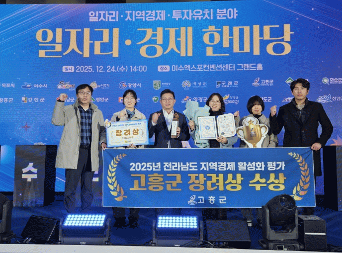 [¹Ìµð¾îÀü³² Á¦°¥´ëÁ¾ ±âÀÚ]°íÈﱺÀº 2025³â Àü¶ó³²µµ ÀÏÀÚ¸®°æÁ¦ ÇѸ¶´ç Çà»ç ½Ã»ó½Ä¿¡¼ ¡®2025³â Áö¿ª°æÁ¦ Ȱ¼ºÈ Æò°¡¡¯ Àå·Á»óÀ» ¼ö»óÇØ ±â°ü ǥâ°ú ÇÔ²² 200¸¸ ¿øÀÇ ½Ã»ó±ÝÀ» ¹Þ¾Ò´Ù°í 29ÀÏ ¹àÇû´Ù. Àü¶ó³²µµ°¡ ÁÖ°üÇÏ´Â ¡®Áö¿ª°æ¡¦