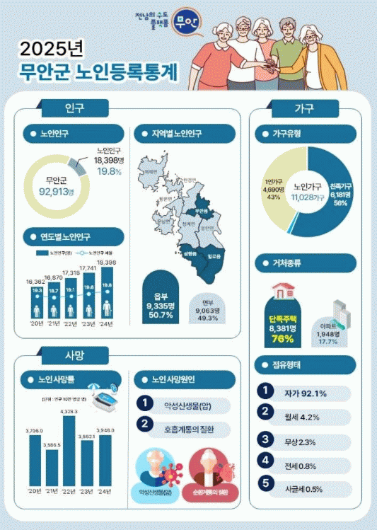 [¹Ìµð¾îÀü³² ±èÆÇ±¹ ±âÀÚ]Àü³² ¹«¾È±ºÀº ³ëÀÎ º¹Áö Á¤Ã¥ ¼ö¸³ÀÇ ±âÃÊÀÚ·á·Î Ȱ¿ëÇϱâ À§ÇØ ¡®2025³â ¹«¾È±º ³ëÀεî·ÏÅë°è¡¯¸¦ ½Å±Ô ÀÛ¼ºÇÏ¿© ±× °á°ú¸¦ °øÇ¥Çß´Ù. À̹ø Åë°è´Â ¡ãÀα¸¡¤°¡±¸ ¡ã°æÁ¦ ¡ã ÀÏÀÚ¸® ¡ãº¹Áö ¡ã °Ç° µî 5´ë ºÐ¾ß¡¦