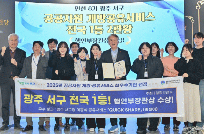 [¹Ìµð¾îÀü³² Á¦°¥´ëÁ¾ ±âÀÚ]±¤ÁÖ±¤¿ª½Ã ¼±¸ÀÇ »ýȰ¹ÐÂøÇü °øÀ¯Á¤Ã¥ ¡®Ãµ¿ø ÇÇÅ©´Ð¡¯ÀÌ Àü±¹ ¹«´ë¿¡¼ ÁÖ¸ñ¹Þ¾Ò´Ù. ¼±¸´Â ÇàÁ¤¾ÈÀüºÎ°¡ ÁÖ°üÇÑ ¡®2025³â °ø°øÀÚ¿ø °³¹æ¡¤°øÀ¯¼ºñ½º ½ÇÀûÆò°¡¡¯¿¡¼ Àü±¹ ÃÖ¿ì¼ö ±â°üÀ¸·Î ¼±Á¤µÅ ÇàÁ¤¾ÈÀü¡¦