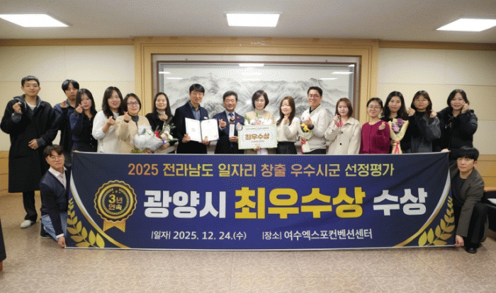 [¹Ìµð¾îÀü³² ÀÓ¼º¿Ï ±âÀÚ]±¤¾ç½Ã°¡ 24ÀÏ ¿ÀÈÄ 2½Ã ¿©¼ö¿¢½ºÆ÷ÄÁº¥¼Ç¼¾ÅÍ¿¡¼ ¿¸° ¡®Àü¶ó³²µµ ÀÏÀÚ¸®¡¤°æÁ¦ ÇѸ¶´ç¡¯ Çà»ç¿¡¼ ¡®2025³â Àü¶ó³²µµ ÀÏÀÚ¸® âÃâ ¿ì¼ö ½Ã±º Æò°¡¡¯ ÃÖ¿ì¼ö»óÀ» ¼ö»óÇß´Ù. À̹ø Æò°¡´Â ¡ã°í¿ëÁöÇ¥ ¡ãû³â¡¤½Å¡¦