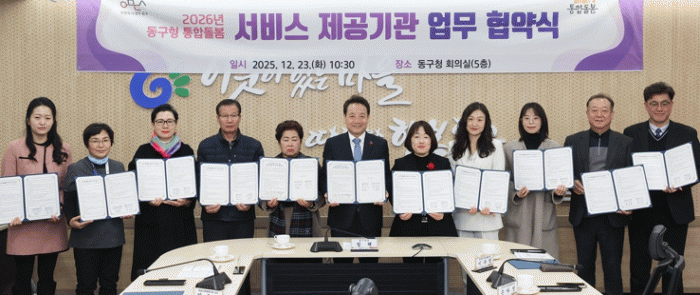 [¹Ìµð¾îÀü³² Á¦°¥´ëÁ¾ ±âÀÚ]±¤ÁÖ µ¿±¸´Â Áö³ 23ÀÏ ±¸Ã»¿¡¼ µ¿±¸Áö¿ªÀÚȰ¼¾ÅÍ µî 11°³ ¼ºñ½º Á¦°ø±â°ü°ú ¾÷¹«Çù¾àÀ» ü°áÇϰí, 2026³â ¡®µ¿±¸Çü ÅëÇÕµ¹º½¡¯ »ç¾÷À» º»°Ý ÃßÁøÇÑ´Ù°í ¹àÇû´Ù. À̹ø Çù¾à¿¡´Â ¡ã±¤ÁÖµ¿±¸Áö¿ªÀÚȰ¼¾ÅÍ ¡ã±¤¡¦