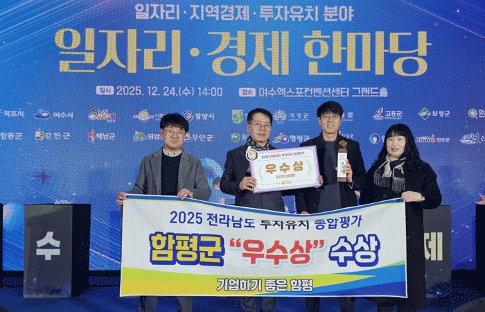 [¹Ìµð¾îÀü³² Á¦°¥´ëÁ¾ ±âÀÚ]Àü³² ÇÔÆò±ºÀÌ ±â¾÷ Ä£ÈÀû ÇàÁ¤°ú ¾ÈÁ¤ÀûÀÎ ÅõÀÚ È¯°æ Á¶¼ºÀ» ÅëÇØ Áö¿ª »ê¾÷ °æÀï·ÂÀ» ³ôÀ̰í ÀÖ´Ù. ÇÔÆò±ºÀº Áö³ 24ÀÏ Àü³²µµ ÁÖ°ü ¡®2025³â Àü¶ó³²µµ ÅõÀÚ À¯Ä¡ Á¾ÇÕÆò°¡¡¯¿¡¼ ¿ì¼ö»óÀ» ¼ö»óÇß´Ù°í 25ÀÏ¡¦