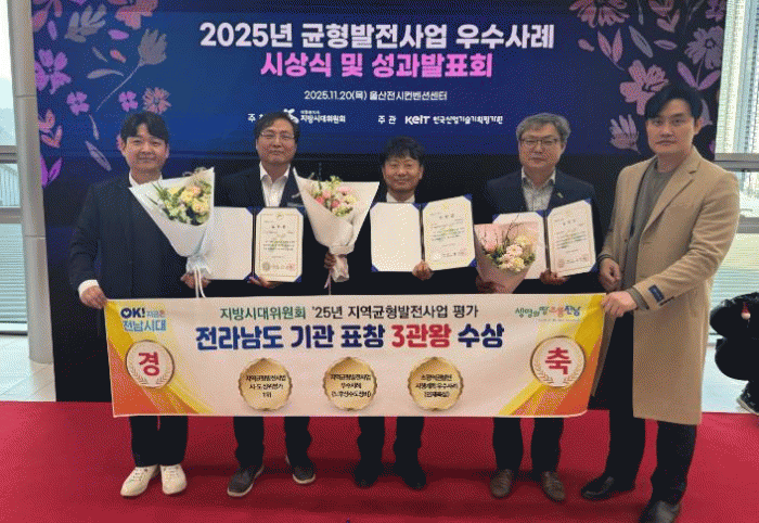 [¹Ìµð¾îÀü³² Á¦°¥´ëÁ¾ ±âÀÚ]Àü¶ó³²µµ´Â ´ëÅë·ÉÁ÷¼Ó Áö¹æ½Ã´ëÀ§¿øÈ¸¿¡¼ ÁÖÃÖÇÏ´Â 2025³â ±ÕÇü¹ßÀü»ç¾÷ ¿ì¼ö»ç·Ê ½Ã»ó½Ä¿¡¼ Àü±¹¿¡¼ À¯ÀÏÇÏ°Ô 3°³ ºÎ¹®À» ¸ðµÎ ¼ö»óÇß´Ù°í ¹àÇû´Ù. ´ëÅë·ÉÁ÷¼Ó Áö¹æ½Ã´ëÀ§¿øÈ¸´Â ¡®Áö¹æÀÚÄ¡ºÐ±Ç ¹× Áö¿ª¡¦