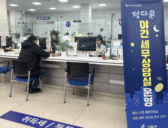 [¹Ìµð¾îÀü³² Á¦°¥´ëÁ¾ ±âÀÚ]°íÈﱺÀº ÁÖ°£ ¾÷¹«½Ã°£ ³» ¹æ¹®ÀÌ ¾î·Á¿î ±º¹ÎÀÇ ¼¼¹«»ó´ã ±âȸ¸¦ È®´ëÇÏ¿© ³³¼¼ÀÚ ÆíÀǸ¦ Á¦°øÇÏ´Â ¡®±º¹Î¼ÓÀ¸·Î! Á¤´Ù¿î ¾ß°£ ¼¼¹«»ó´ã½Ç¡¯À» ¿î¿µÇÑ´Ù°í ¹àÇû´Ù. ¾ß°£ ¼¼¹«»ó´ã½ÇÀ» ¸ÅÁÖ È¿äÀÏ, ±Ù¹«½Ã°£¡¦