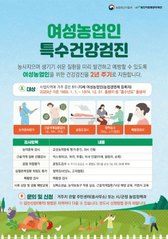 [¹Ìµð¾îÀü³² Á¦°¥´ëÁ¾ ±âÀÚ]°íÈﱺÀº ¿©¼º³ó¾÷ÀÎÀÇ ³óÀÛ¾÷ Áúȯ ¿¹¹æ°ú °Ç°º¹Áö ÁõÁøÀ» À§ÇØ¡®2025³â ¿©¼º³ó¾÷ÀΠƯ¼ö°Ç°°ËÁø »ç¾÷¡¯À» ½ÃÇàÇÑ´Ù°í ¹àÇû´Ù. ¿©¼º³ó¾÷ÀΠƯ¼ö°Ç°°ËÁøÀº ÀϹݰǰ°ËÁø°ú ´Þ¸®, ¿©¼º³ó¾÷ÀÎÀÌ Ãë¾àÇÑ Áúȯ¡¦